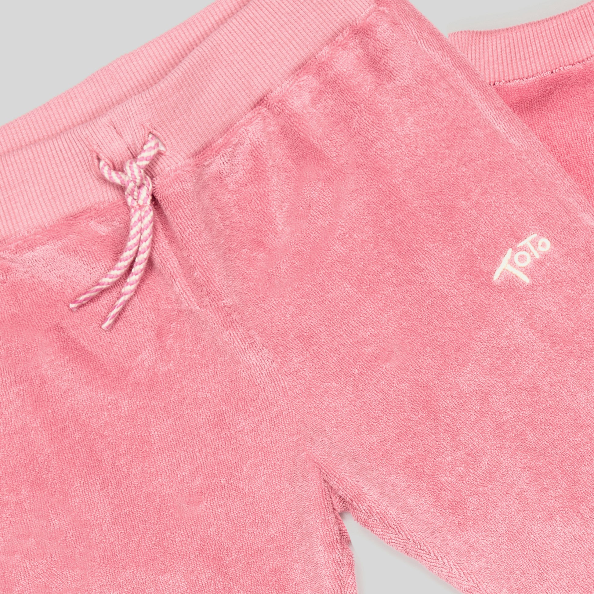 Keep your little one cosy and comfortable in our Pink Towelling Jogging Bottoms. Designed with an elasticated waistband and faux drawstring, the easy pull-on style makes dressing fuss-free. Pair them with our matching pink t-shirt for an effortlessly coordinated and stylish look.